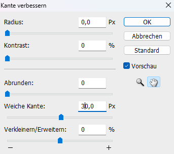 Klicke nun oben in der Leister auf Kante verbessern, stelle so ein