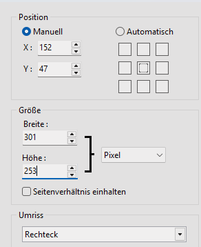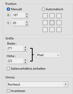 Bearbeiten - Einfügungsarten - Innerhalb der Auswahl - Zentriert