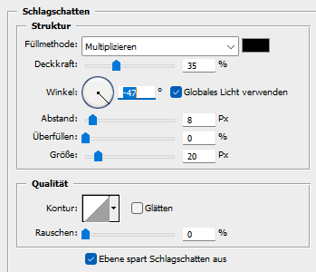 Stelle die Füllmethode auf Luminanz und die Deckkraft auf 60%