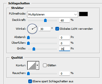 Schlagschatten wie eben in Punkt 11, Stelle die Deckkraft der Fläche auf