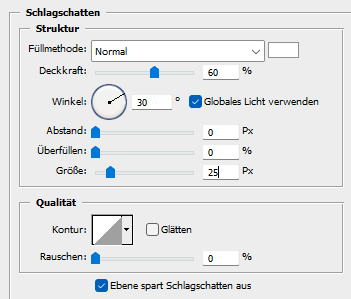 Auch hier einen Schlagschatten anwenden und scharfzeichnen