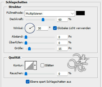 Rastere den Text und gebe ihm diesen Schlagschatten