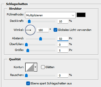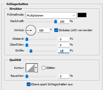 Aktiviere die oberste Ebene und wende den Schlagschatten erneut an aber