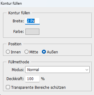 Bearbeiten - Kontur füllen wie eingestellt, Auswahl - Auswahl aufheben