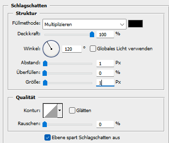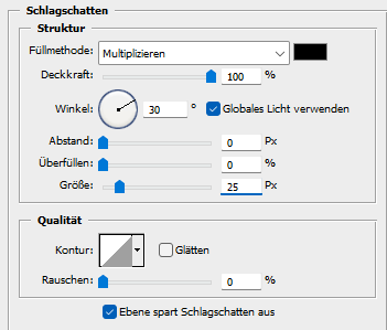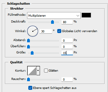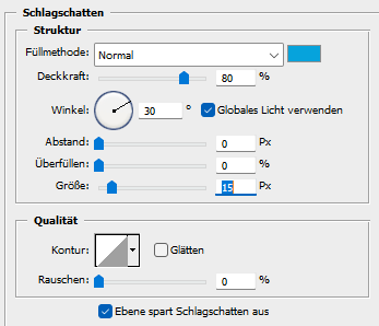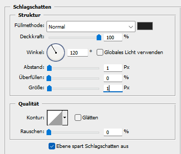 Auswahl - Auswahl aufheben, fx - Schlagschatten wie eben