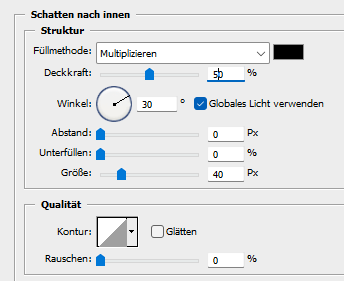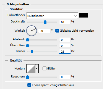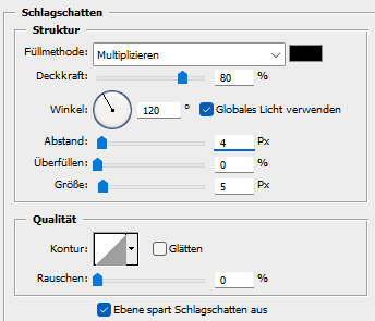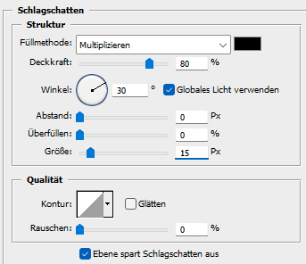 Schiebe sie sehr knapp an den linken Rand, wende diesen Schlagschatten