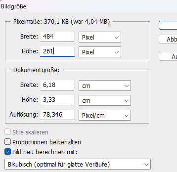 Bild - Bildgröße, mache alle Haken rein und gebe dann bei der Höhe 397