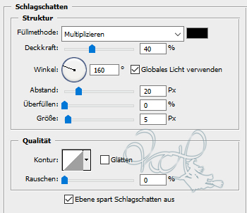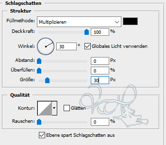 Aktiviere die zweite Ebene von oben. fx - Schlagschatten