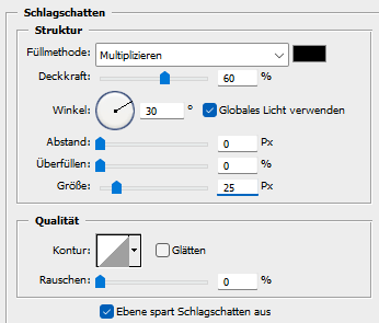 Füllmethode auf Negativ Multiplizieren stellen und die Deckkraft auf 35%