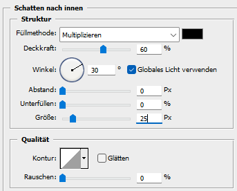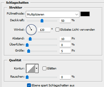Aktiviere die zweite Ebene von oben, fx - Schlagschatten