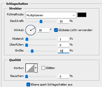 Klicke unten rechts auf das Rechteck mit dem Kreis (Ebenenmaske