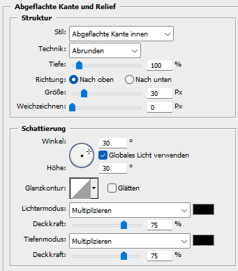 Drücke Strg+J, fx - Abgeflachte Kante & Relief